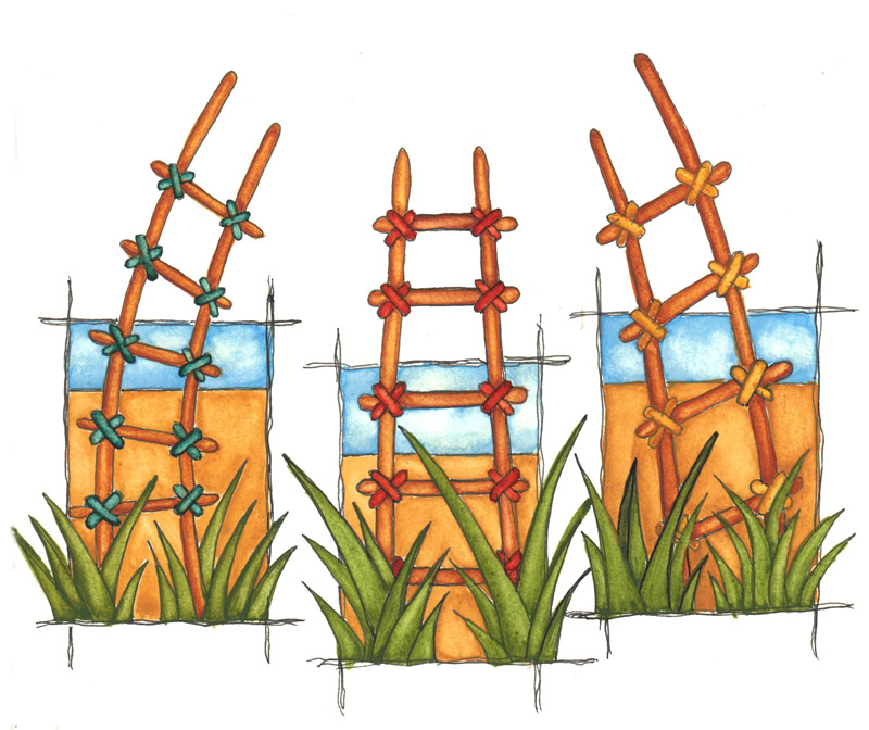 Kiva Ladders are iconic in Santa Fe, used widely as garden decor. They are made of Latillas - sapling poles lashed together with rawhide.