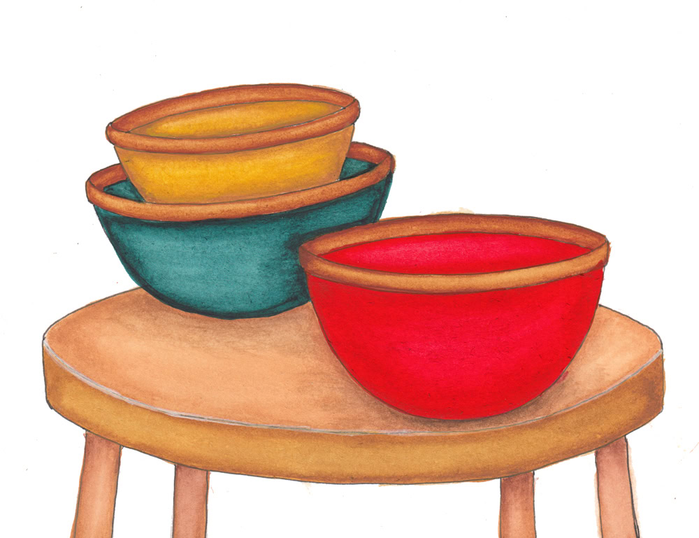 I love ceramic bowls and collect them in all sizes. I especially love glazed bowls with unglazed terra cotta rims.