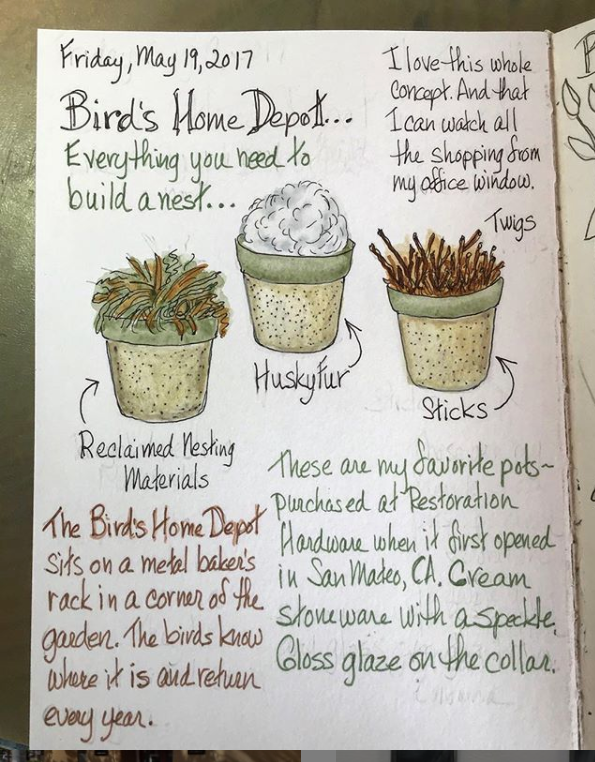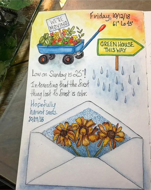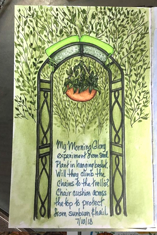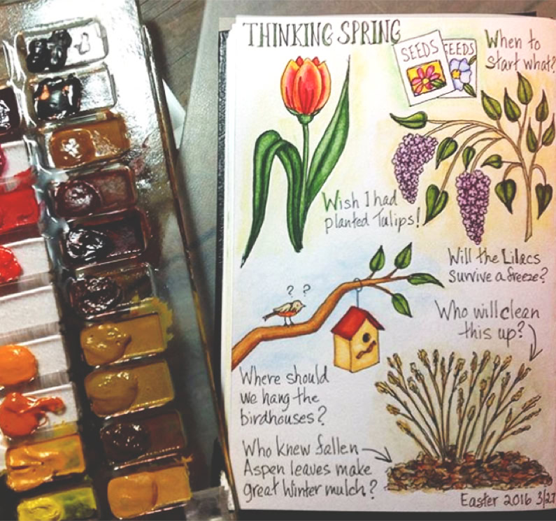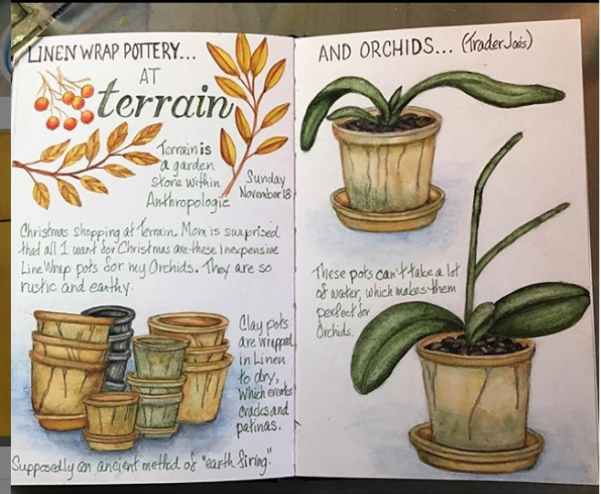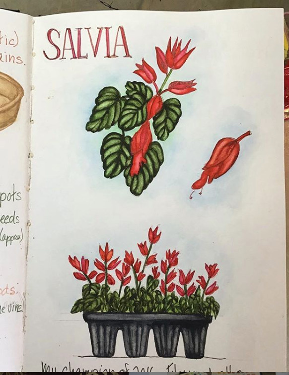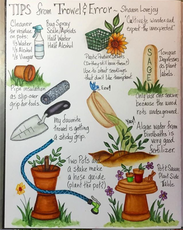 Sharon Lovejoy’s book, Trowel and Error, is one of my all time favorite gardening books. Instead of just taking notes as I read it I created a couple sketchbook pages and substituted my own illustrations for hers.