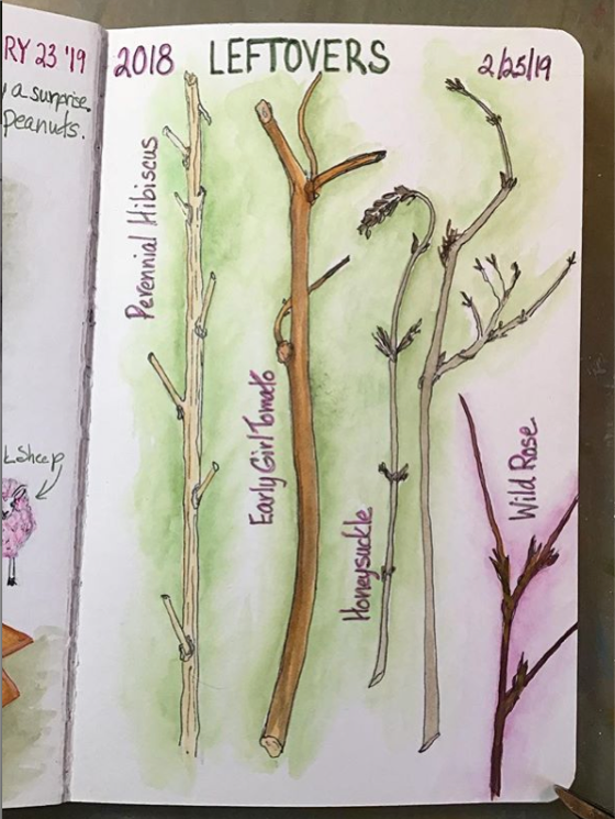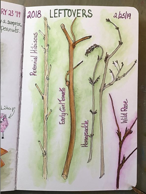Subjects for garden journaling are more scarce in the Winter season, but the bare twigs left over tell the story of the growth patterns of the plant and will make for knowing the plant better in the Spring.
