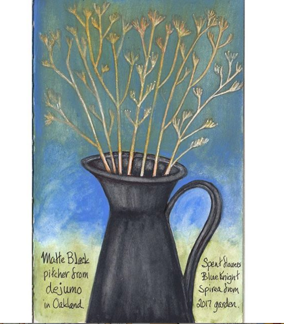 I just couldn’t get this one right. It is hard to make dead plants beautiful. So, I kept going back with layers of gouache until it looked like an acrylic painting instead of a watercolor sketch!