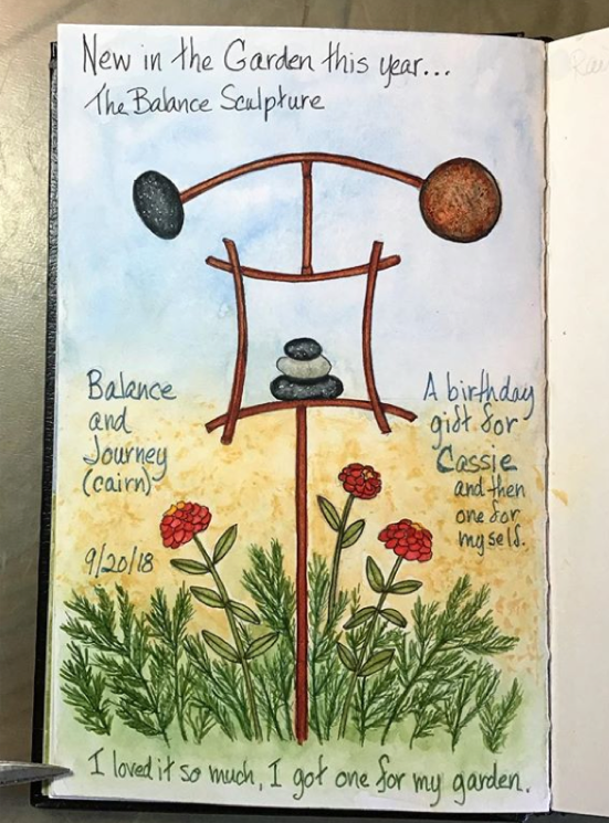 This sculpture is one of my favorite things in the garden. The wind causes the balance beam to spin and birds sitting on it make a fun difference in its “balance”. I could stare at it for hours as a meditation practice - and I do.