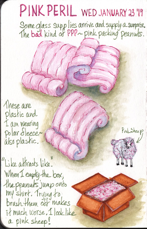 It can be a totally ordinary day and you open a package which has those “bad” kind of packing peanuts. There’s static in the air. All of a sudden, it’s not an ordinary day at all, and you look like a pink sheep.